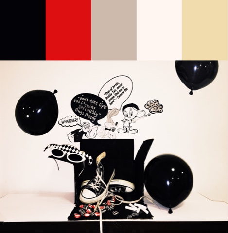 If I were to change anything about this colour story project, I would possibly rethink our choice of monochrome. I feel this way because by narrowing our range of colours down to black and white, it did not leave much scope to experiment with different shades and tones that you could find within brights, pastels or complex colours. Although as a colour theme, monochrome can be both exaggerated and bold in terms of graphics, it did not really allow us as a group to go into depth with colours that were more flamboyant and exciting such as summer seasonal tones or deep, warm autumnal shades. Either of these examples may have possibly provides us with a stronger narrative for our final outcome rather than one that was overly complicated. However, I still liked our concept because we managed to take black and white and show it as playful, fun and comical rather than it being such a serious set of colours that lacked a sense of emotion and positivity.